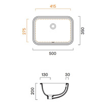 Раковина встраиваемая снизу. Без отверстия под смеситель. С переливом. Покрытие Cataglaze+