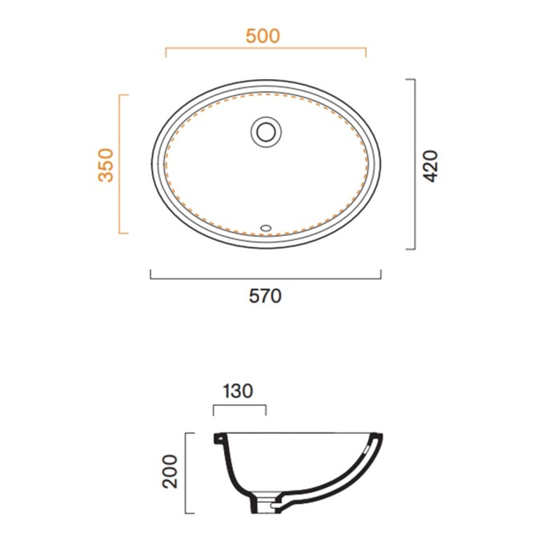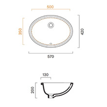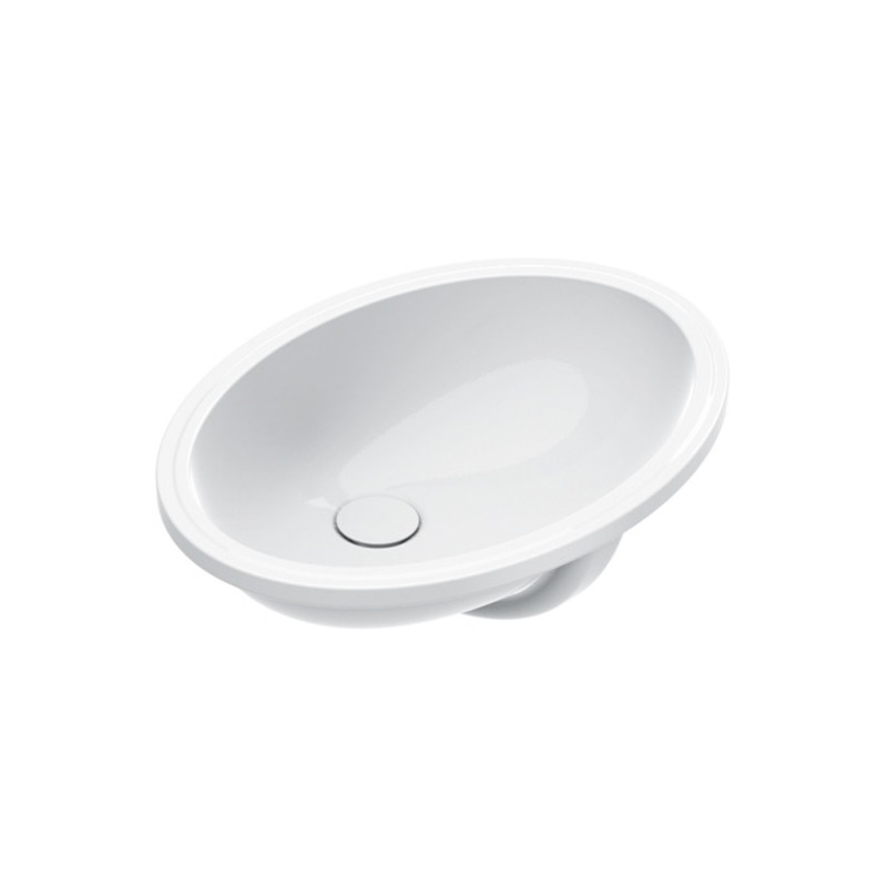 Раковина встраиваемая снизу. Без отверстия под смеситель. С переливом. Покрытие Cataglaze+