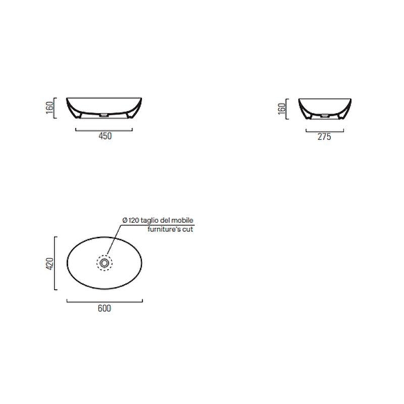 Раковина-чаша GSI Pura 60 884217 Cenere opaco