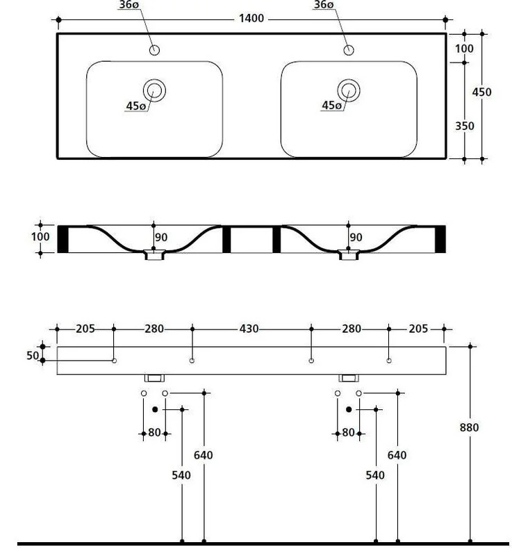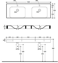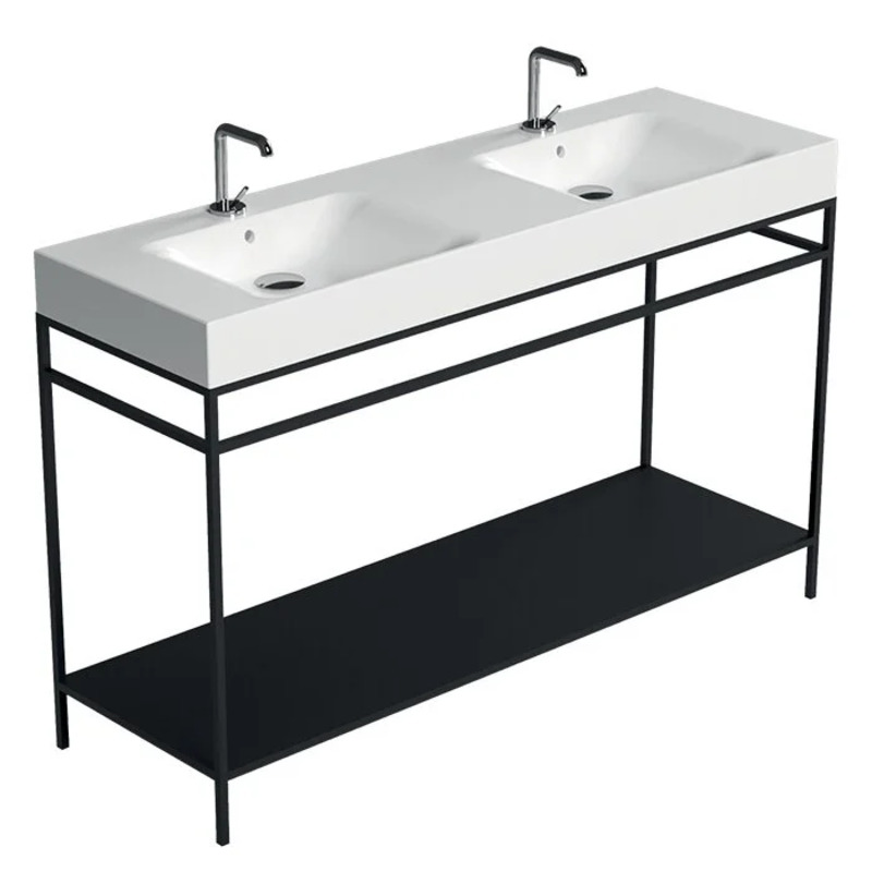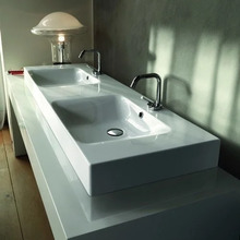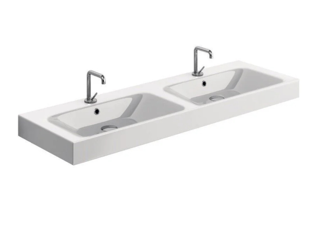 Раковина двойная Kerasan Cento 353601*1, 140 см, подвесная, керамика, по 1 отверстию для смесителя у каждой чаши, белая