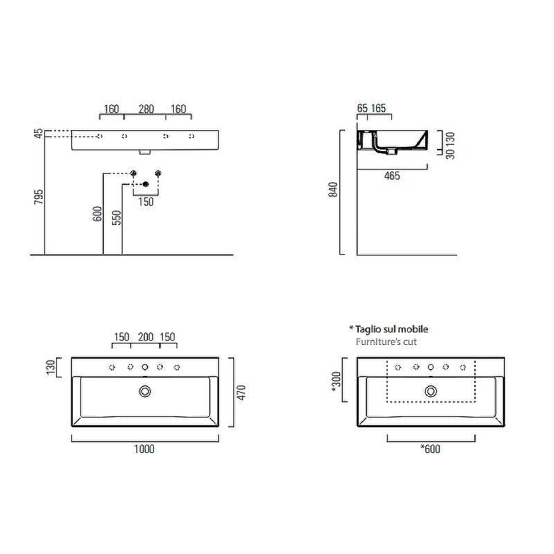 - Размеры (ШхВхГ): 1000х160х470 мм.