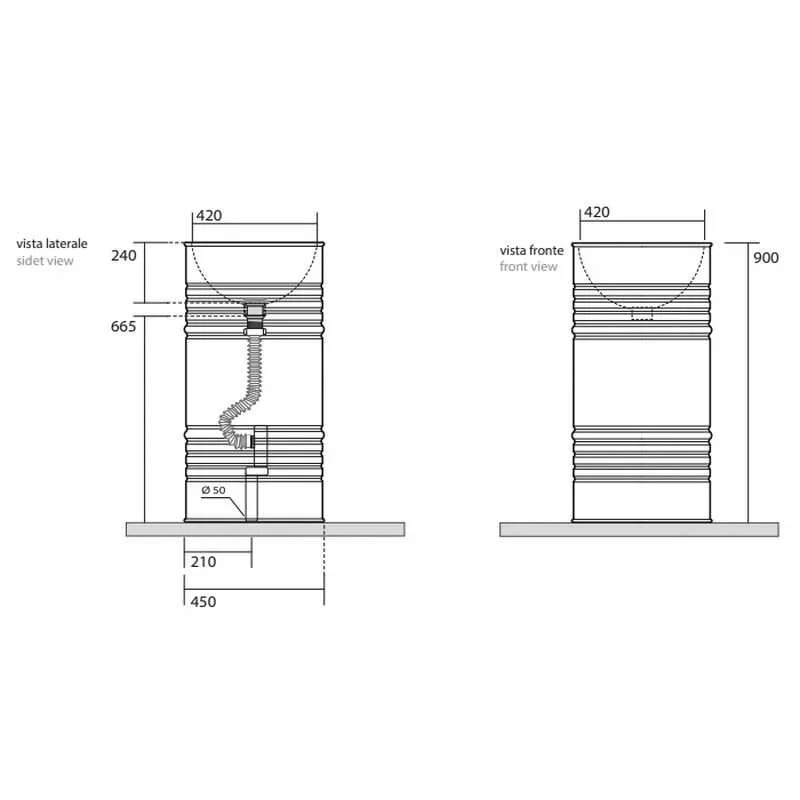 Раковина Kerasan Artwork Barrel 4742K31, 45 x h90 см напольная, слив в пол, черный матовый