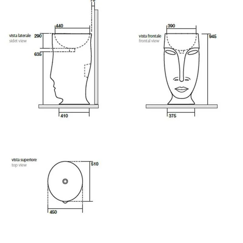 Раковина Kerasan Artwork Moloco 474031, 45 x 51 см напольная, слив в стену, черный матовый