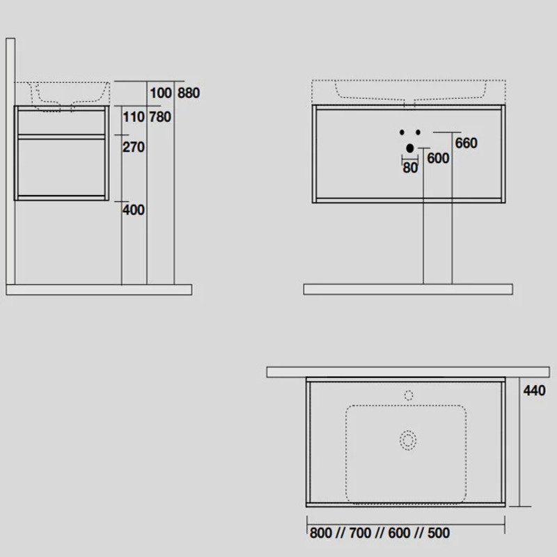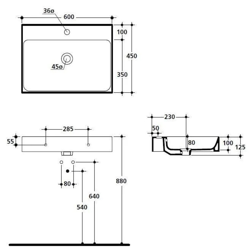 Раковина Kerasan Cento 353101*1, 60 см, подвесная/накладная, белый