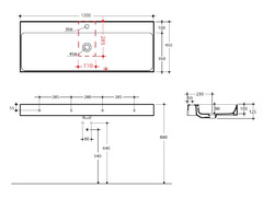 Раковина Kerasan Cento 3534 bi*1, 120 см, подвесная, 1 отверстие под смеситель, белая