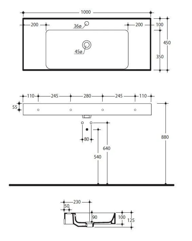 - Габариты 1000 х 450 х 100 мм