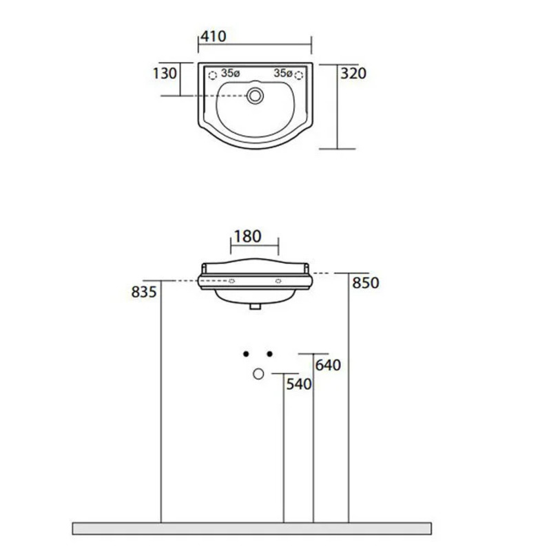 Раковина Kerasan Retro 103301*1 sx 41 см, отверстие под смеситель слева (SX), цвет белый