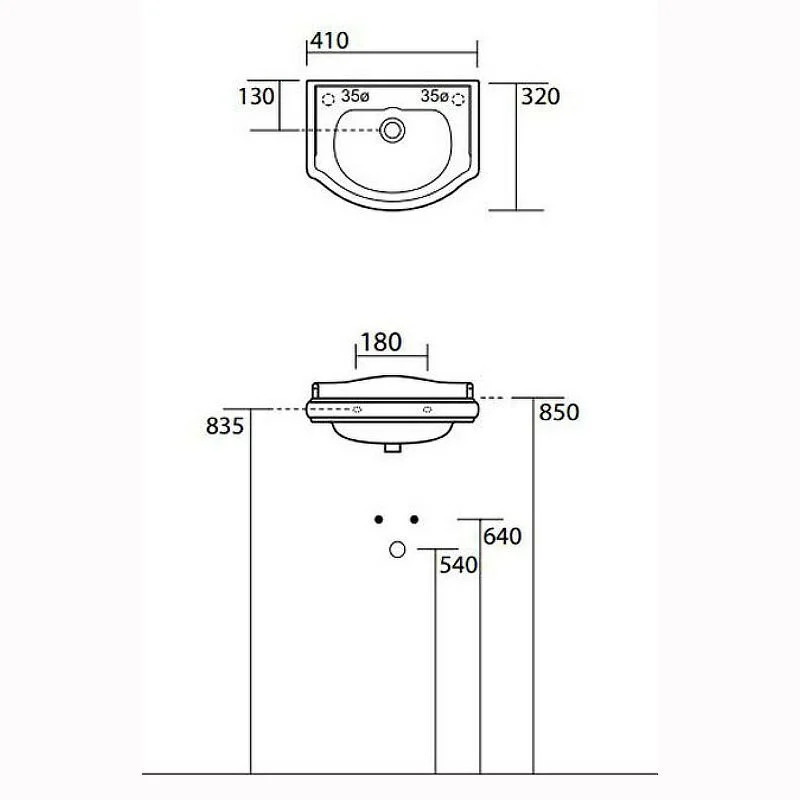 Раковина Kerasan Retro 103301, 41 см, без отверстий под смеситель, белый