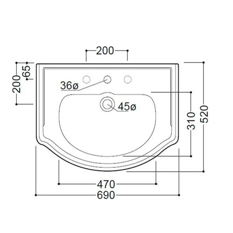 Раковина Kerasan Retro 104601*3, 69 см, 3 отверстия под смеситель, цвет белый