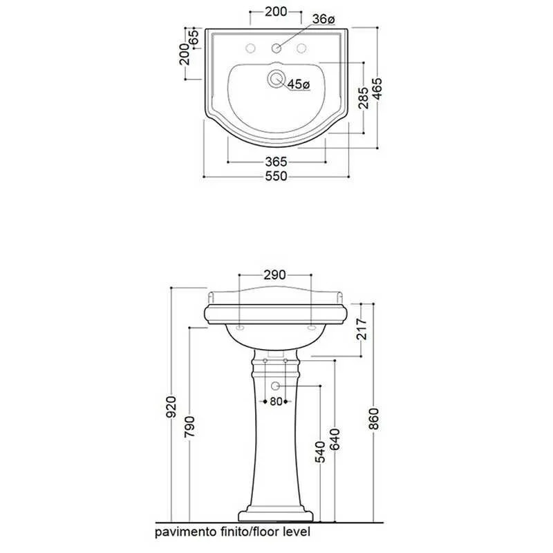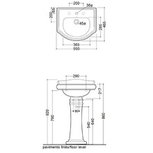 Раковина Kerasan Retro 55 см, 104501*1, 1 отверстие под смеситель, белый