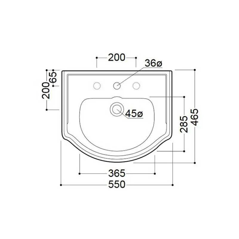 Раковина Kerasan Retro 55 см, 104501*3, три отверстия под смеситель, белый