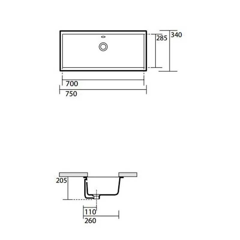 Раковина Kerasan Slim 022501, 75 см, встраиваемая снизу, белый
