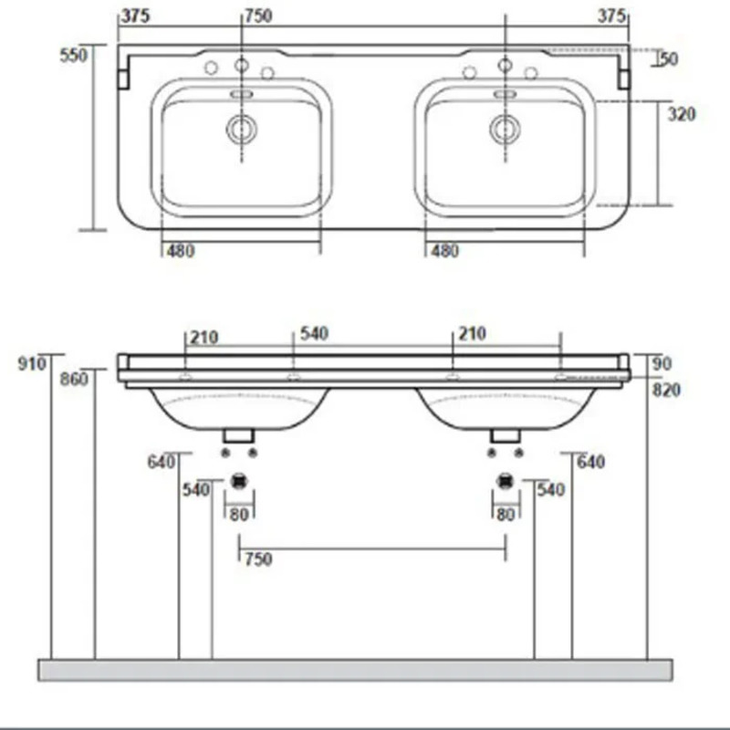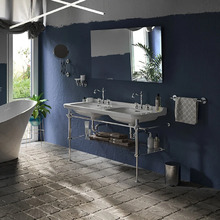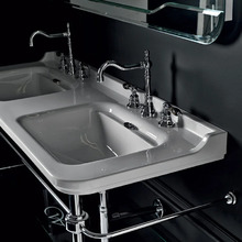 Раковина Kerasan Waldorf 4143K1bi/cr*3 керамическая двойная, 3 отверстия под смеситель, белая