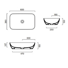 Раковина накладная. Без отверстия под смеситель. Без перелива. Покрытие Cataglaze+