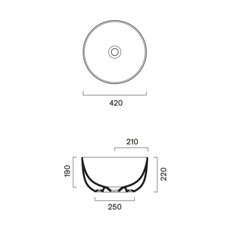 Раковина накладная. Без отверстия под смеситель. Без перелива. Покрытие Cataglaze+