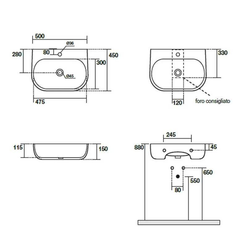 Раковина накладная Kerasan Nolita 534001*1, 50 см, цвет белый глянцевый
