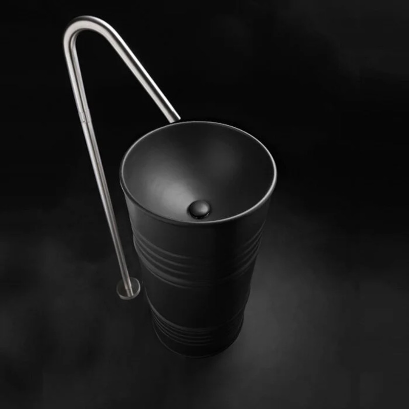 Раковина напольная Kerasan Artwork 474331 Barrel, слив в стену, цвет Nero matt черный матовый