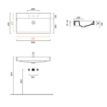 Раковина подвесная. Без отверстия под смеситель. Без перелива. Покрытие Cataglaze+