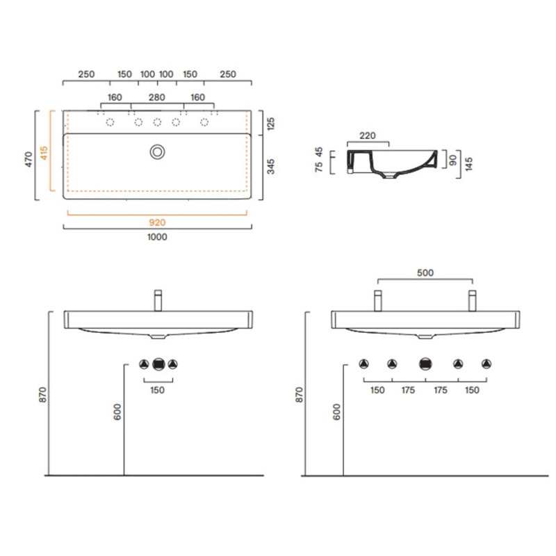 Раковина подвесная. Без отверстия под смеситель. Без перелива. Покрытие Cataglaze+