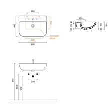 Раковина подвесная. C отверстием под смеситель. С переливом. Покрытие Cataglaze+