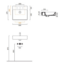 Раковина подвесная. Без отверстия под смеситель. С переливом. Покрытие Cataglaze+