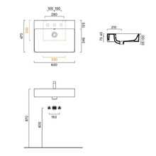 Раковина подвесная. Без отверстия под смеситель. Без перелива. Покрытие Cataglaze+