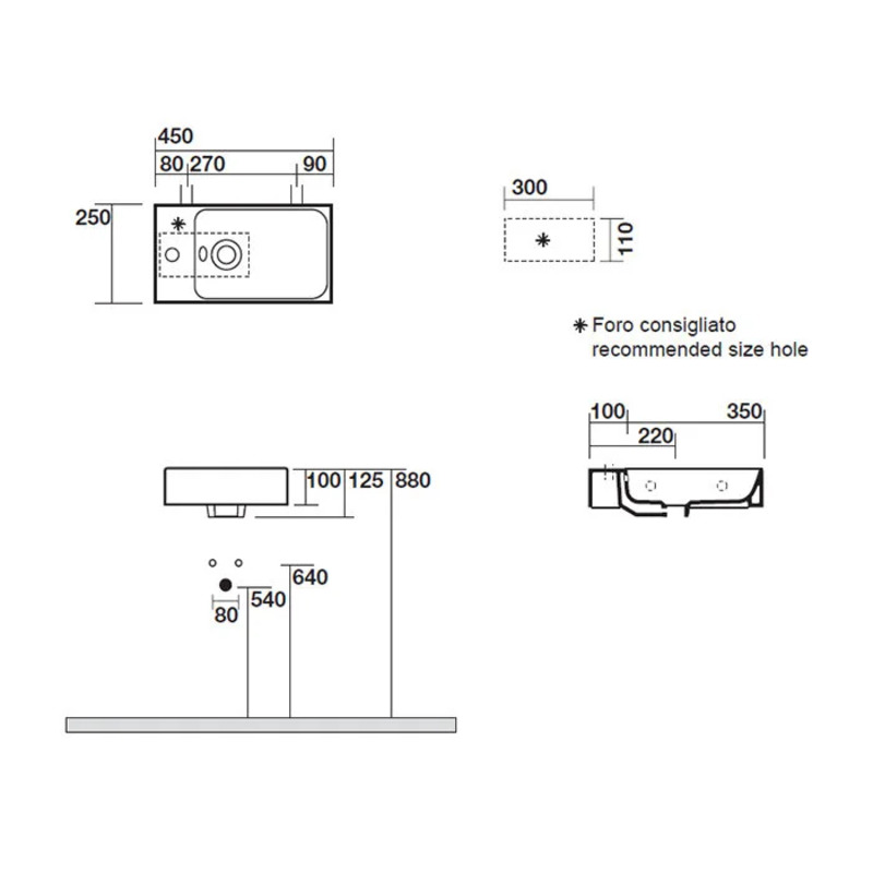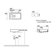 Раковина подвесная Kerasan Cento 353701L*1, 45 см, керамика, отверстие под смеситель слева SX, цвет белый