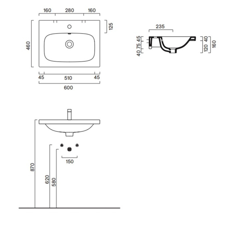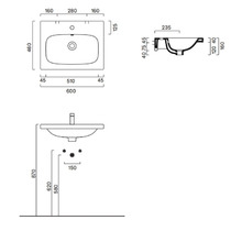 Раковина подвесная/встраиваемая сверху. Без отверстия под смеситель. С переливом. Покрытие Cataglaze+