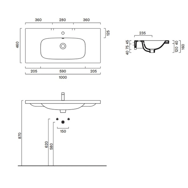 Раковина подвесная/встраиваемая сверху Catalano Alvea 0621010001 100х46 см, белый глянцевый