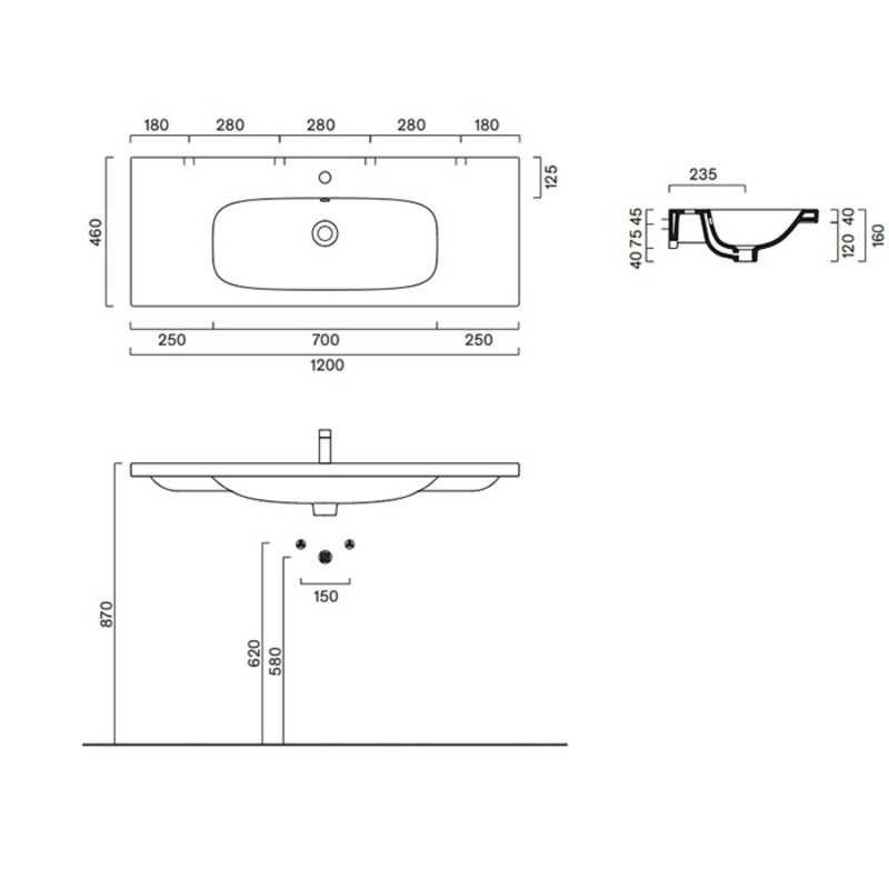 Раковина подвесная/встраиваемая сверху Catalano Alvea 0621210001 120х46 см, белый глянцевый