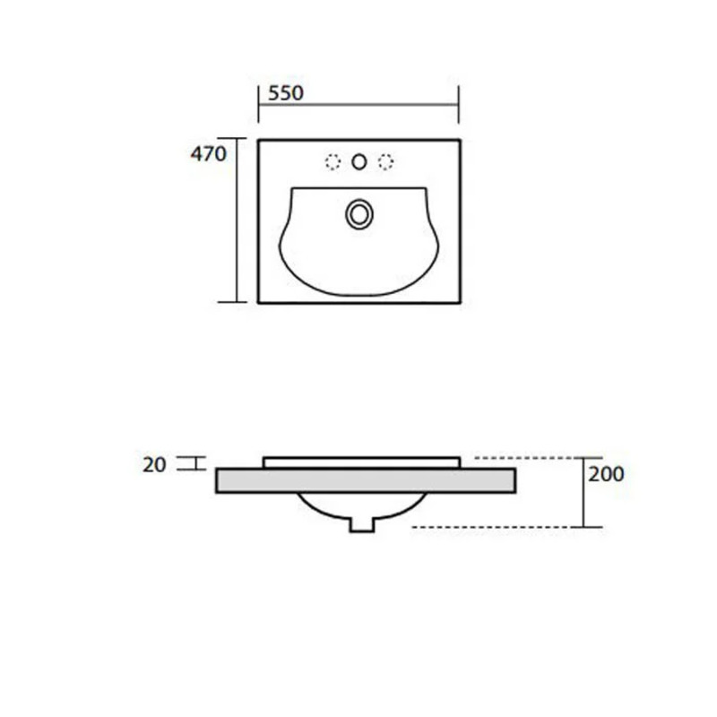 Раковина встраиваемая Kerasan Bentley 394201*1, 55 см, керамика 4 стороны глазированы, цвет белый