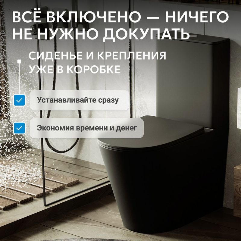 Унитаз ABBER Bequem AC1112TMB компакт черный матовый, безободковый, смыв торнадо
