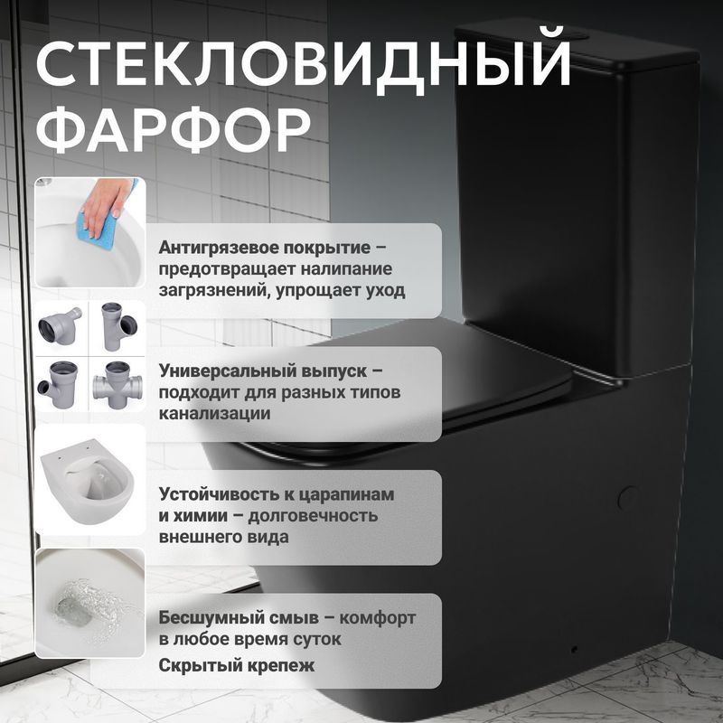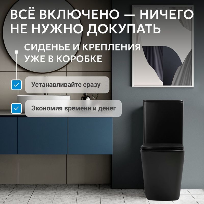 Унитаз ABBER Rechteck AC1210TMB компакт черный матовый, безободковый, смыв торнадо