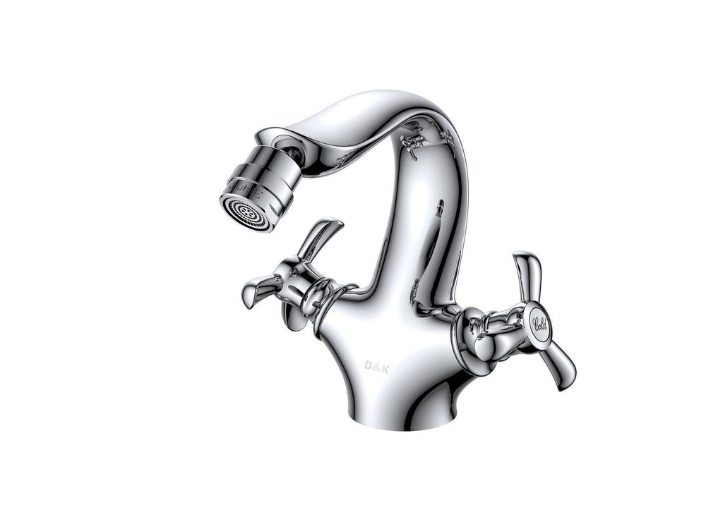 Блестящий внешний вид двухручкового смесителя привлекает своим внешним видом, послужит прекрасным дополнением классической ванной комнаты с биде.