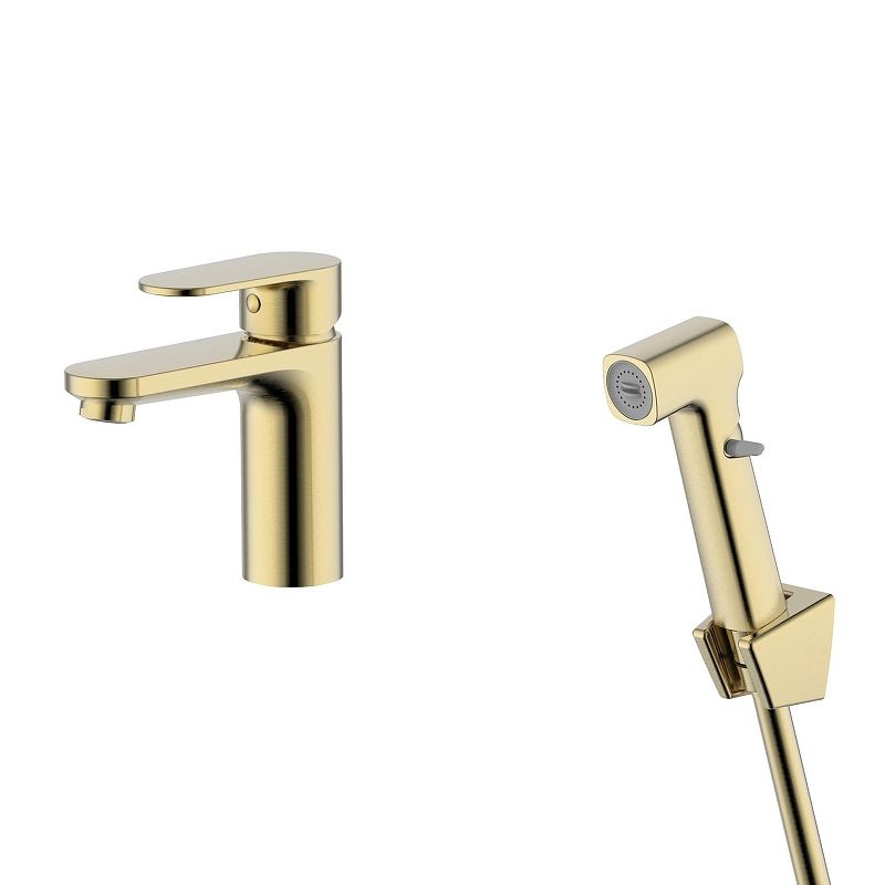 Смеситель для раковины Aquatek Ника AQ1812BG с гигиеническим душем цвет Золото шлифованное