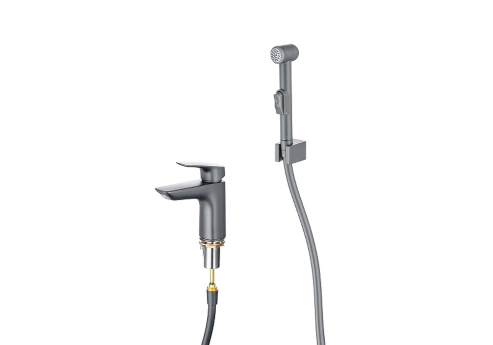Смеситель для раковины Aquatek Вега AQ1012BGM с гигиеническим душем цвет Оружейная сталь