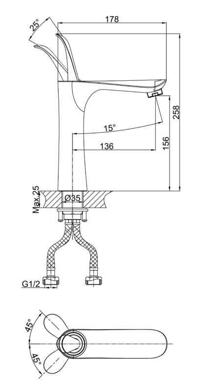 - Гибкая подводка 40 см идёт в комплекте для быстрой установки.