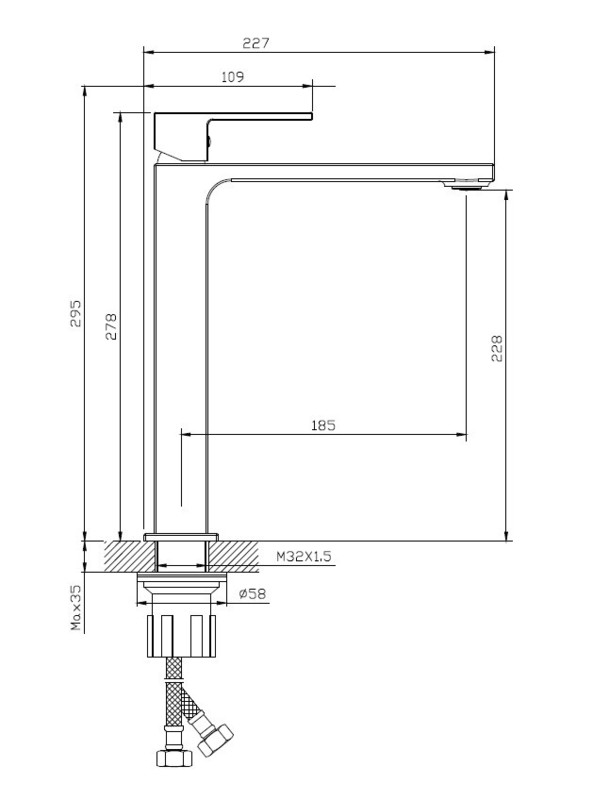 - Гибкая подводка 40 см идёт в комплекте для быстрой установки.