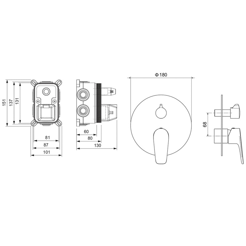Смеситель для ванны встраиваемый Aquatek Бетта AQ1147BGM оружейная сталь