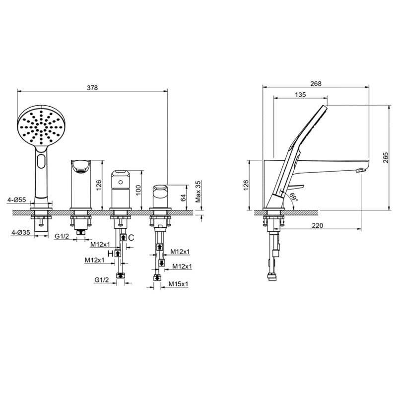 Смеситель на борт ванны Aquatek Бетта AQ1148BGM оружейная сталь