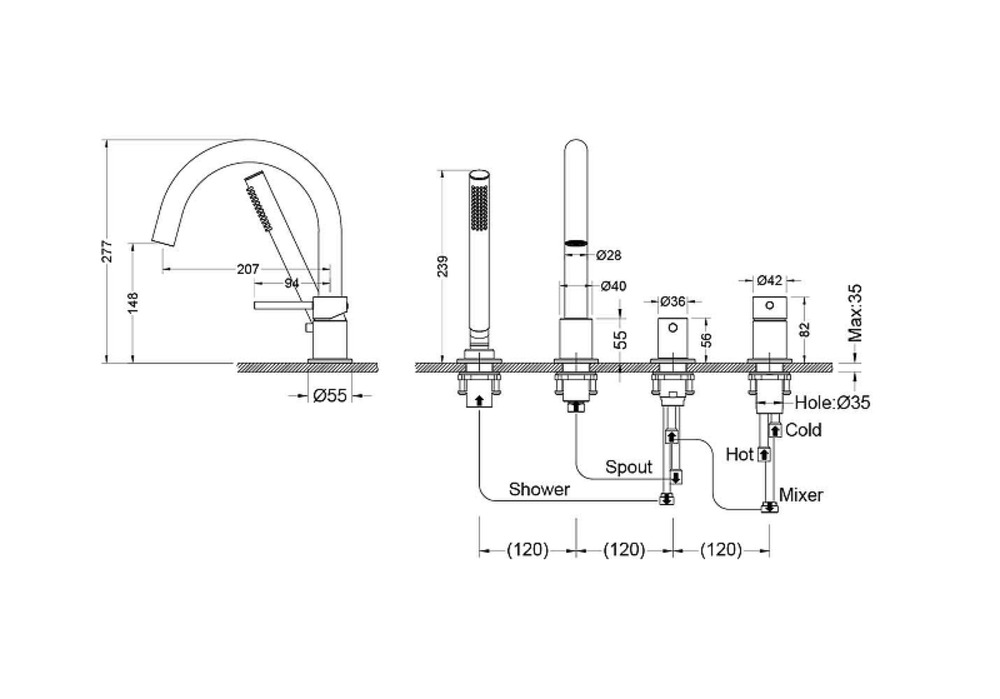 Смеситель на борт ванны Aquatek Европа AQ1348BG цвет Золото шлифованное