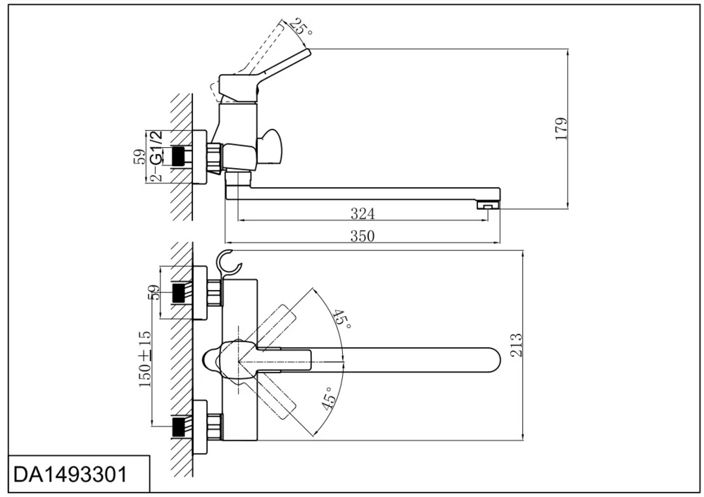 - Душевая трехрежимная лейка и шланг длиной 150 см уже в комплекте.