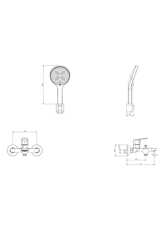 - Душевая трехрежимная лейка и шланг длиной 150 см уже в комплекте.