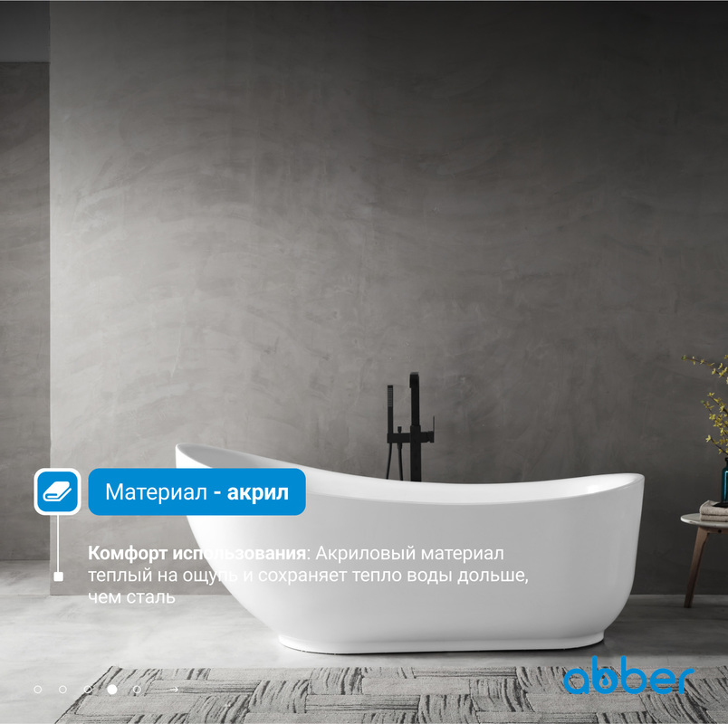 Стильная с современным дизайном отдельностоящая ванна, выполненная из качественного акрила.