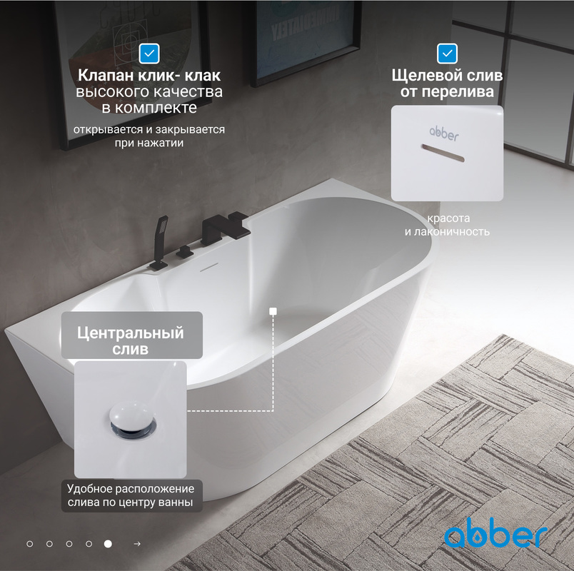Акриловая ванна ABBER AB9296-1.7 белого цвета — это практичный и функциональный элемент интерьера для вашей ванной комнаты. Изготовленная из цельнолитого акрила толщиной 4 мм, она отличается высоким уровнем прочности и долговечности. Данная модель спроектирована с учётом современных стандартов и может стать компактным решением для различных стилей оформления.