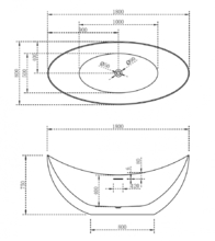 Ванная акриловая предназначена для установки в отдельностоящем варианте. Объем этой модели составляет 190 литров. Сливное отверстие, расположенное по центру.