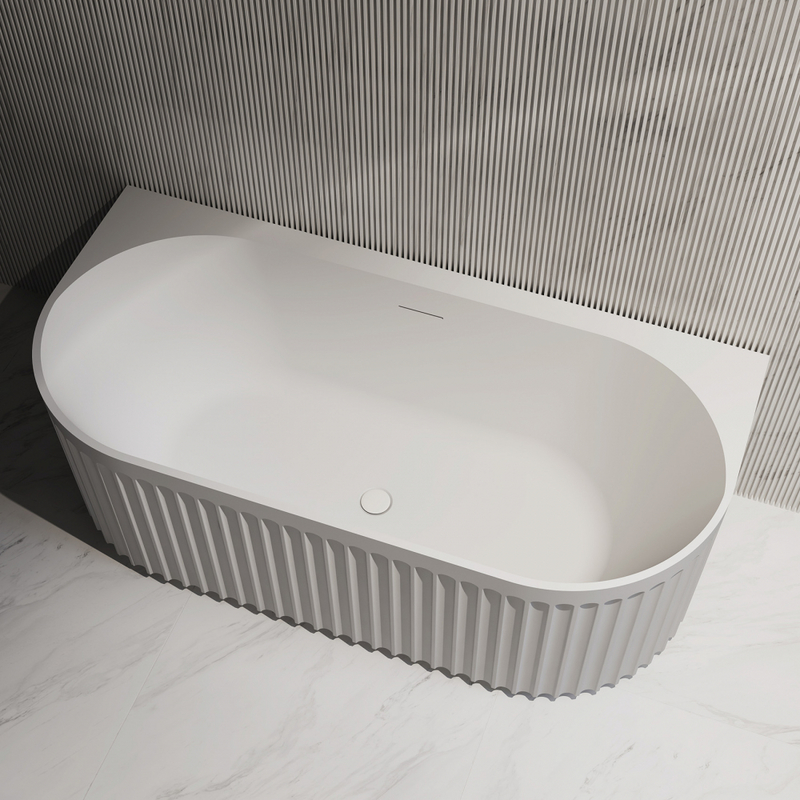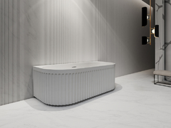 Акриловая ванна имеет овальную форму и характерный белый цвет. Объем ванны составляет 260 литров. Установка предусмотрена как пристенная.