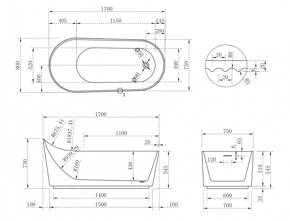 Данная ванна отличается стандартными размерами с длиной 170 см, шириной 80 см и высотой 73 см. Объем 185 литров. Акриловая ванна может быть интегрирована в стандартную ванную комнату, и ее установка не требует дополнительных усилий, так как она идет в комплекте с каркасом и ножками.
