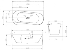 Модель AB9494-1.7 имеет овальную форму и размеры 1700 x 780 x 580 мм. Объем данной акриловой ванны составляет 220 литров. Установка происходит в пристенном варианте, что облегчает процесс монтажа.