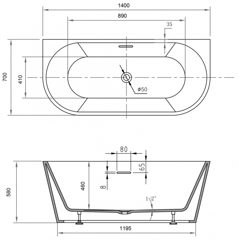 Акриловая ванна ABBER AB9503-1.4 белая